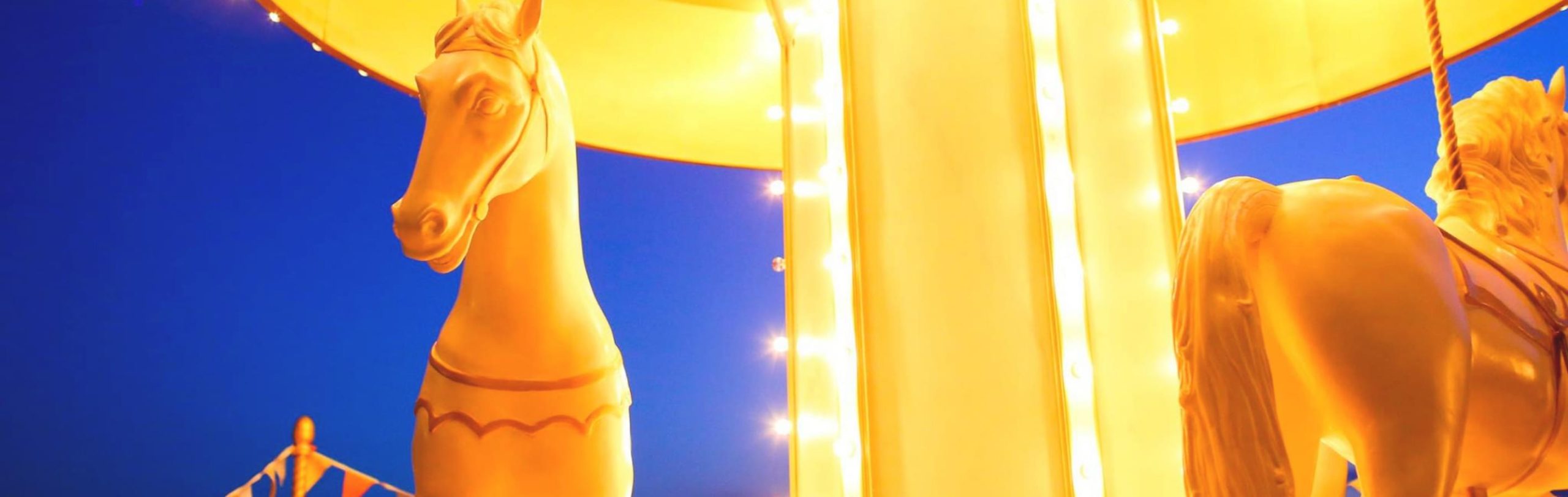 今年も逗子海岸映画祭に毎年好評の移動式メリーゴーランドが登場。